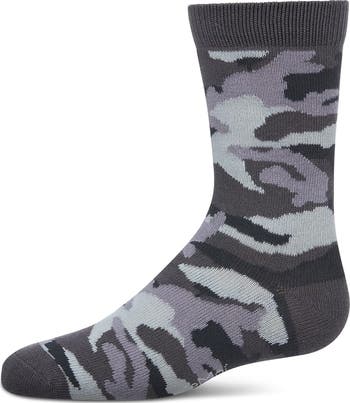 MeMoi Camouflage-Pattern Crew Socks, Main, color, Gray