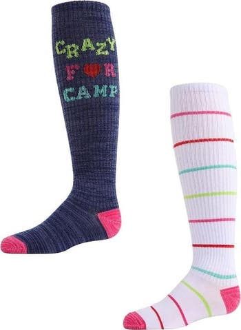 Your kid will be one happy camper in our Camp Knee High Socks. Send her off with some good summer vibes this year, with cute designs and comfy construction that will keep her running, jumping, swimming, and hiking all season long