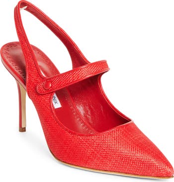 Manolo Blahnik's classic Campari pump—beloved since its '90s debut—gets a contemporary refresh in this slingback rendition handcrafted from woven raffia and edged in smooth leather.