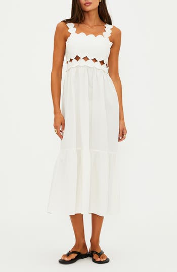 Flirty scallops and peek-a-boo cutouts at the bodice elevate this cotton dress from simple to standout—perfect for sunny escapes.