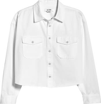 A raw-cropped hem brings a modern edge to this Western-style snap-up shirt made from crisp, all-season twill in a relaxed fit.