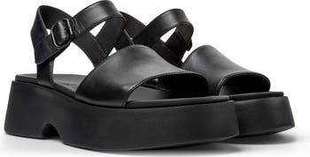 Soft leather straps and an anatomic footbed ensure lightweight comfort in a walkable wedge sandal done in a monochrome palette.