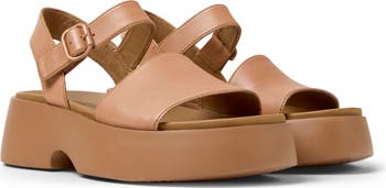 An anatomic footbed and an extralightweight sole ensure flexibility and comfort in a bold platform sandal topped with leather straps.