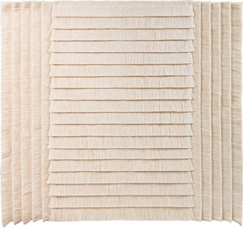 The Rice Field Tapestry is part of the "Recovered" Collection, a collection of decorative pieces based on the principles of recovering, assembling and transforming. We recover, classify and store the remnants of the cotton thread used in the production of our Large Format pieces for eventual reuse. We transform raw materials that would be discarded under “normal” production circumstances, giving them an opportunity to give life to decorative pieces destined to inhabit our interior spaces.