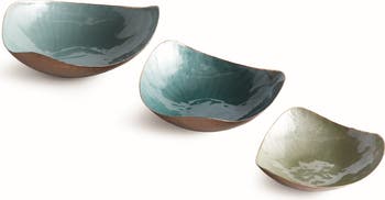 This charming set of hand-painted decorative bowls are clean and modern. With a gold edge detail, and coordinating soft green hues, they add a pop of color to kitchen island, side table or ottoman. A lovely catch-all for jewelry, keys or spare change.