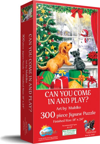 Experience a cozy, enchanting winter world with the "Can You Come in and Play" 300 piece jigsaw puzzle, meticulously designed by the talented artist Makiko to capture the essence of Christmas cheer. This artwork, boasting a finished size of 18" x 24", is fully licensed, richly detailed and perfect for framing. Each interlocking piece, expertly crafted by SunsOut Puzzles, guarantees a seamless puzzle-solving adventure. Crafted from high-quality recycled cardboard, the puzzle pieces fit securely together, providing an enjoyable and satisfactory assembly experience. SunsOut Puzzles prides itself in quality and customer satisfaction, reflecting in their puzzles that are proudly made in the USA, adhering to the highest manufacturing standards. Their commitment to eco-friendly practices is commendable; the puzzles are made with soy-based inks and high-quality recycled board, retaining their vibrancy and robustness, allowing you to indulge in your hobby guilt-free. This 300 piece jigsaw puzzle also doubles up as an engaging family entertainment activity. The large, full-color display box makes it an ideal festive gift, encouraging a collaborative puzzle-solving journey that creates lasting memories, long after the season ends. A purchase of SunsOut Puzzles also ensures swift resolution of any issues related to missing or damaged pieces, reflecting their dedication to delivering a premium puzzle experience.