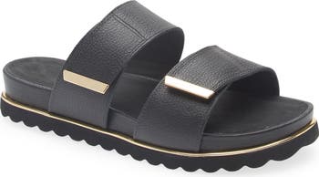 Adjustable straps offer the ideal fit for this slide sandal set on a cushioned footbed and sturdy sole.