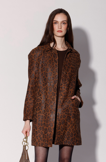 The Candice Coat is a classic car coat silhouette updated with our chic printed suede. With welt pockets and a relaxed fit, it makes stand-out style on the go easy.