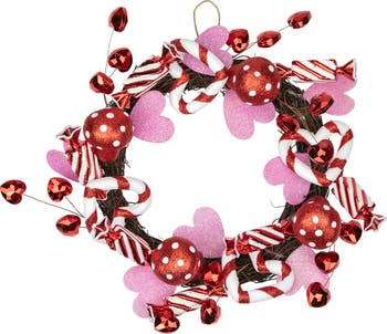 Candies and Hearts Valentine's Day Small Artificial Wreath - 16" - Red