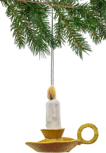 Add a meaningful touch to your Christmas tree with this hand-stitched ornament made from felted wool in the shape of a candle.