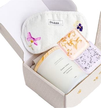 - All-Natural relaxation spa items in a box set, include: Big glass scented candle (9oz)