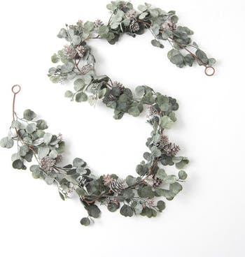 Candlelit Evenings - Faux Dusty Green Silver Dollar Eucalyptus & Pinecone Christmas Mantel Garland