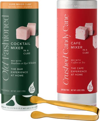 Give the gift of the perfect Old Fashioned Cocktail or festive Crushed Candy Cane Latte with this set of delectable hand-crafted mixer cubes that will instantly elevate your drink. The set includes a pair of golden tongs that make dropping a cube into your glass extra special.