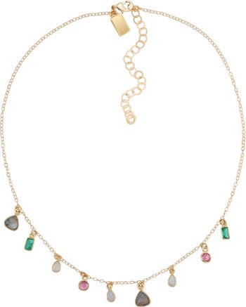 Just like candy, tiny emerald green quartz, teardrop opal, round pink topaz, and trillion-cut labradorite come together in a vibrant, colorful arrangement. Designed as an everyday statement, this necklace layers beautifully with the long Candy Gem style. Crafted in 14K gold fill and adjustable from 14–17 inches for the perfect fit.
