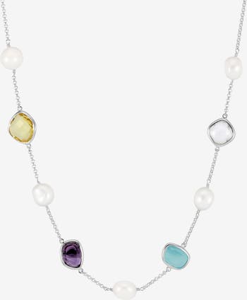 Candy Gemstone & Baroque Pearl Pebble Necklace