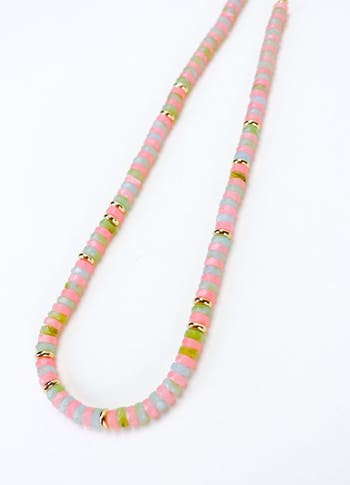 If you're searching for a pretty jewelry box essential, you'll love the Candy Tart Necklace with shades of mint and grapefruit.