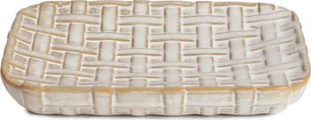 Add the perfect finishing touch to your living space with this ceramic soap dish inspired by the intricate basket-weave technique of wicker.