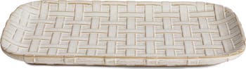 Add the perfect finishing touch to your living space with this decorative ceramic tray inspired by the intricate basket-weave technique of wicker.
