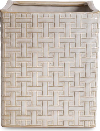 Add the perfect finishing touch to your living space with this ceramic wastebasket inspired by the intricate basket-weave technique of wicker.
