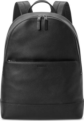 Signature logo debossing and richly pebbled leather distinguish a spacious backpack featuring multiple compartments and adjustable straps for easy organization and on-the-go convenience.