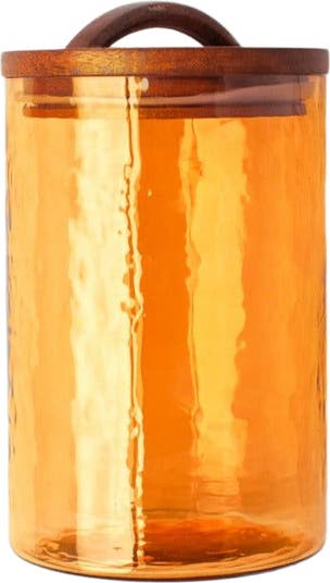 Beautifully textured glass paired with a hand-carved wooden lid makes these canisters the ultimate in stylishly functional home organization. Perfect for use in the kitchen or as an apothecary jar, each includes a rubber ring for an airtight seal.