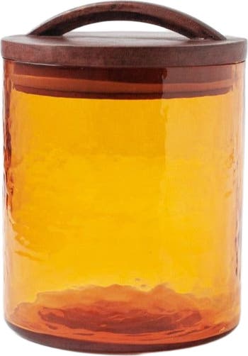 Beautifully textured glass paired with a hand-carved wooden lid makes these canisters the ultimate in stylishly functional home organization. Perfect for use in the kitchen or as an apothecary jar, each includes a rubber ring for an airtight seal.
