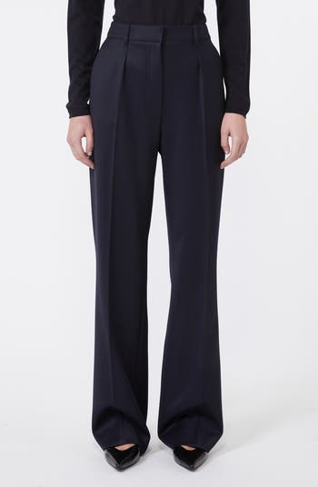 Wardobe-staple trousers in a pleat-eased straight-leg silhouette are masterfully tailored in Italy from virgin-wool twill in a pair-with-anything hue.