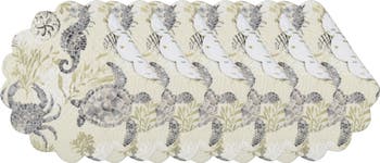 Our Cannon Beach tabletop collection will be the star of your next dinner party! With its painterly marine life depictions—including sea turtles, crabs, sea horses, and sand dollars—quilted design and scalloped edging, this tabletop collection will give your table an extra splash of style. Plus, thanks to the machine washable fabric, you won't have to break a sweat to keep it looking fresh and pristine. Each piece of the Cannon Beach tabletop collection is reversible with two different designs makes it easy to mix, match and create new looks.