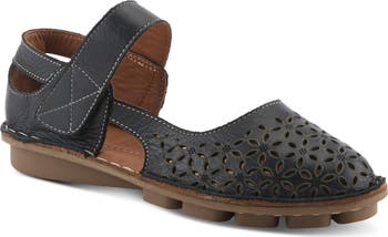 Laser-cut flowers enhance the whimsical charm of this soft leather flat framed by Goodyear welt stitching and grounded by a flexible, lightweight sole.
