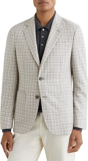 Subtle texturing elevates the breathable knit of a sport coat that's patterned in a pale houndstooth check and designed to complement any casual or elevated-casual look. Softer construction in the shoulders and a subtly fitted waist provide a relaxed feel with a traditional silhouette.