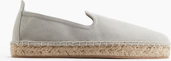 Espadrilles in canvas with a braided jute trim around the soles. Padded heel patch and soles that are patterned underneath.