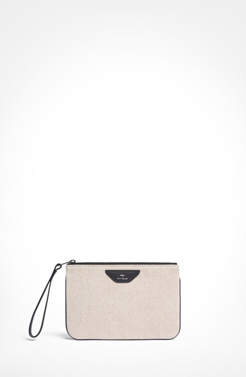 This stylish travel pouch is perfect for keeping your make-up, valuables, and loose items organized. Featuring a canvas body with leather trim and an anodised rose gold zip, it combines functionality with elegance.