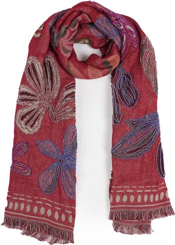 Bring a touch of free-spirited charm to your fall wardrobe with the Canyon Petal Cotton Blend Scarf – Red. Earthy and untamed, this scarf features a deep chestnut red base adorned with embroidered blooms in violet, sienna, ochre, and poppy purple, inspired by the natural hues of canyon walls and desert flora. Crafted with hand-guided machine embroidered textureand finished with fringe edges, this scarf offers both warmth and character, making each fold a statement of style and artistry. Its cotton-blend fabric ensures a soft, comfortable drape that’s perfect for layering over chunky cardigans, pairing with boots, or adding an effortless accent to everyday outfits. Versatile and visually striking, the Canyon Petal Scarf transforms simple layering into a story of color, texture, and natural inspiration. Ideal for fall and winter wardrobes, it balances practical warmth with artisanal detailing, making it a must-have accessory for both casual and polished looks. Key Features: Red base with embroidered canyon-inspired blooms Cotton blend with handcrafted texture for softness and warmth Fringe edges for a relaxed, bohemian finish Versatile styling for layering, casual, or statement wear.