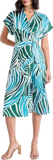 Cap Sleeve Chain Detail Faux Wrap Midi Dress