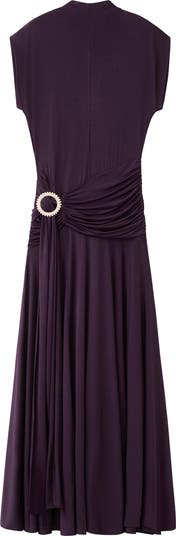 Sparkling hardware accentuates the ruched waist and flowing skirt of this stunning dress that's ready for your moment in the spotlight.