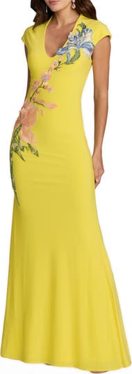 Cap Sleeve Scoop Neck Jersey Floral Detail Gown