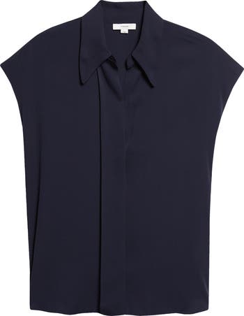 This stretch-silk button-up shirt is designed with a sleek, refined sensibility. Cap sleeves, a point collar and hidden placket create a streamlined look, while the lustrous fabric delivers a sophisticated, luxe finish.