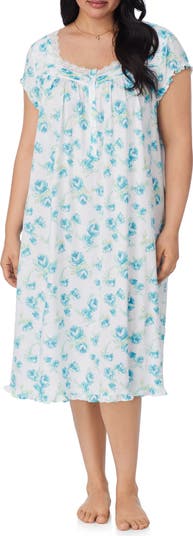 Eileen West Cap Sleeve Waltz Nightgown, Alternate, color, White/ Aqua Floral