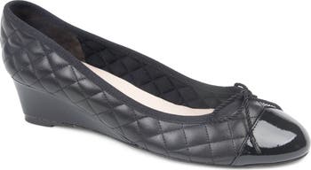 A functional tie lets you adjust the fit of this quilted-leather wedge pump handmade in Spain from premium materials and set on a cushioned footbed for daylong comfort.