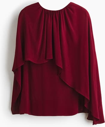 Sleeveless blouse in a viscose weave, designed with an asymmetric cape layer around the top. Features a round neckline with gathers at the front and a keyhole opening with a button at the back.