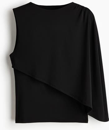 Fitted, sleeveless top in jersey featuring a round neckline and an asymmetric cape-look layer at the top with gathers on one shoulder.