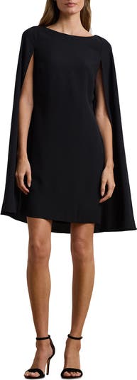 Flowing capelet sleeves bring bold sophistication to your next evening out when you wear this double-face cocktail dress.