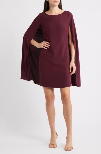 Feel your most sophisticated in this georgette cocktail dress featuring a flowy capelet detail and tailored darts.