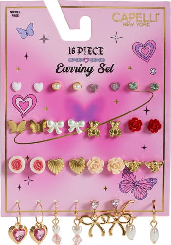 Help your stylish kid jazz up any look with this collection of earrings that are perfect for mixing and matching.