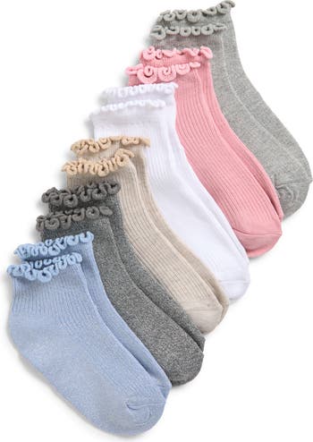 Lettuce-edge detailing brings whimsical charm to these supersoft ankle socks finished with a lustrous metallic shimmer.