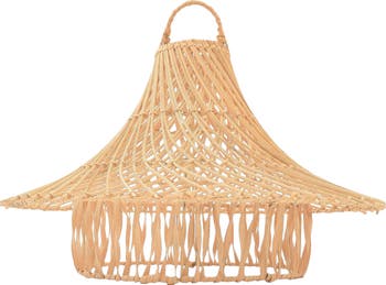 Elevate your home with this unique hand-woven Caping Rattan Pendant Ceiling Light. This hanging light immediately elevates any room in your home. Hand-crafted using organic, natural, environmentally friendly rattan material, this light fixture styles easily. Perfect for your kitchen nook, bedroom over nightstand, or entryway, add this decor to your home today!