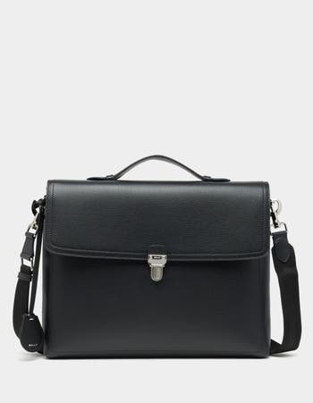 This Capitol briefcase pairs grained black calfskin with a classic flap silhouette and palladium-hue hardware. The top handle and adjustable strap offer a choice of carry, revealing the practical design of this timeless bag.