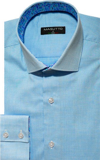 A neat geometric pattern adds subtle dimension to a sport shirt cut from breathable cotton.