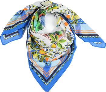 Bring a touch of Mediterranean sunshine to your wardrobe with the Capri Postcard Square Scarf. Crafted from lightweight 100% cotton, this scarf features a vibrant collage of postcard-style illustrations inspired by Capri coastal villages, lemon branches, turquoise waters, and sunlit landscapes. Framed by bold blue and striped borders, the playful prints are elevated with hand-guided machine embroidery that adds subtle texture and artisanal charm. Effortlessly versatile, this square scarf can be worn as a neck scarf, styled as a headscarf, or tied to a handbag for a chic pop of color. Perfect for adding warmth, personality, and a sense of wanderlust to both casual and polished outfits, its a timeless accessory that blends everyday practicality with effortless elegance. Key Features 100% lightweight, breathable cotton Capri-inspired illustrated motifs with hand-guided machine embroidery Soft, comfortable, and easy to style Versatile use neck scarf, headscarf, hair or bag accessory Adds warmth, color, and personality to any outfit DETAILS MATERIAL 100% Cotton SIZE 40 X 40 CARE Hand wash cold, do not bleach, dry flat, low iron, or dry clean Designed in Los Angeles Made in India
