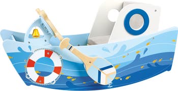 Kids can set sail on indoor adventures in this interative wooden toy boat.
